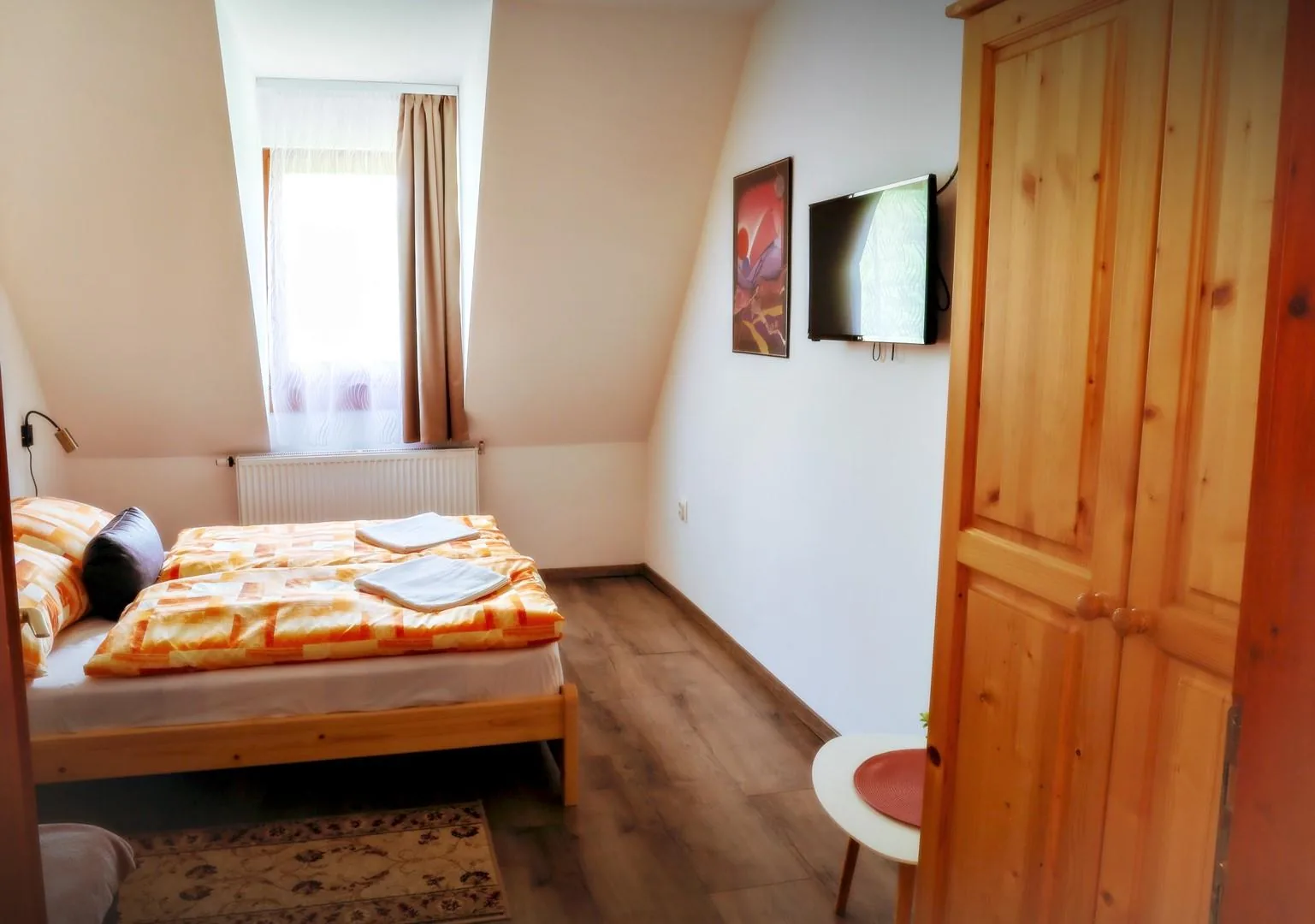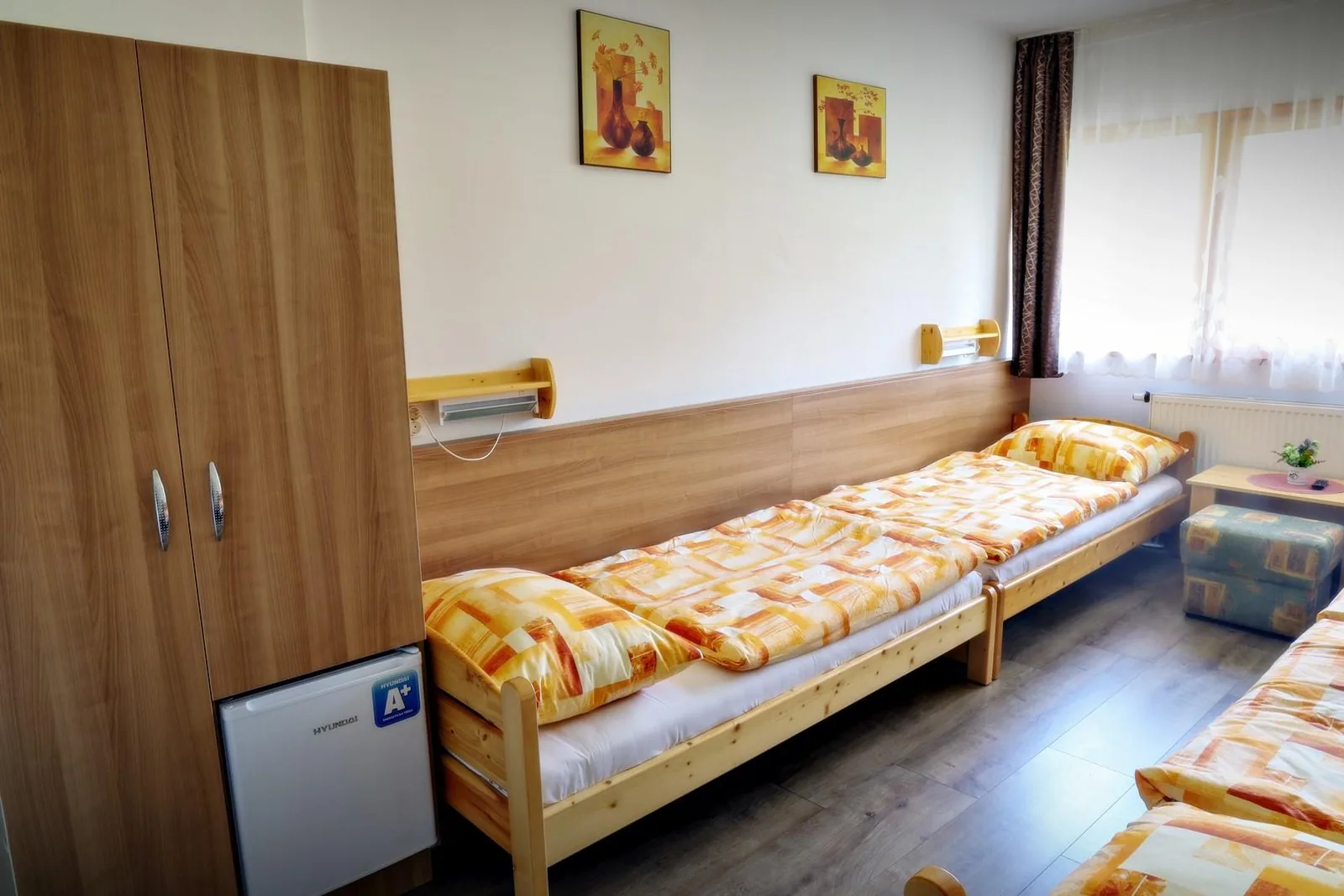 11 szobában 35 fő kényelmes elhelyezkedését tudjuk biztosítani. Szobáink 2 - 3 - 4 - 6 ágyas zuhanyzós szobák, melyek jól felszereltek, szobákban TV, mini hűtőszekrény.
