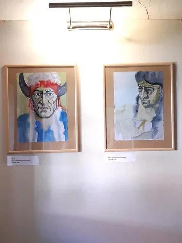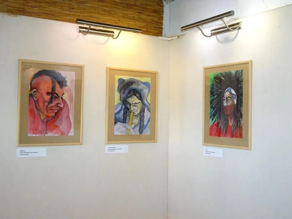 A sorozatot több évtizede kezdte, nagyobb méretű olajképekkel, amiken a „Bakonyi indiánok” festett arcát örökítette meg, és azóta sok helyen kiállította, de méretük folytán ebben a térben nem férnek, így az itt kiállított darabok a művész az „indián játék” közben festett kisebb méretű akvarell portré-festményeiből áll.
