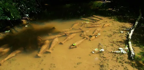 A Gerence patakban, Bakonybél külterületén a Szajhavölgyi rét mellett, szunnyadó világháborús robbanótestek formája rajzolódott ki a mederben.