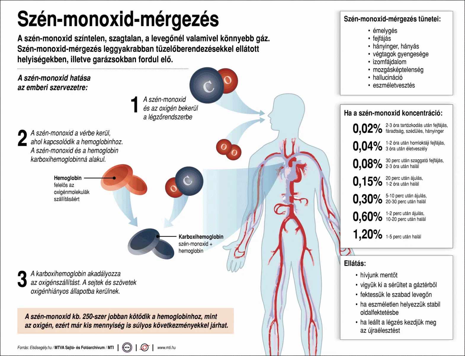 A szén-monoxid-mérgezés az egyik leggyakoribb háztartási baleset, a probléma hátterében legtöbbször a helytelenül használt tüzelőberendezés, kémény, kályha, kandalló, gázsütő, gázszárító, gázkazán, gáz vízmelegítő áll, emellett a baj forrása a szabálytalan kivitelezés, az időszakos ellenőrzés és karbantartás elmulasztása, vagy a szellőző elemek lezárása volt. A hibás készülékek működése miatti tökéletlen égés során mérgező gáz szabadul fel, amely azért különösen veszélyes, mert színtelen, szagtalan, a levegőnél alig könnyebb, nem irritáló, ugyanakkor megakadályozza, hogy a vér megfelelő mennyiségű oxigént szállítson, ezért másodpercek alatt eszméletvesztést okozhat. Idén eddig 595 szén-monoxidos esethez riasztották a tűzoltókat, az érintett ingatlanok 80 százalékában volt érzékelő. Az esetek során összesen 6 ember vesztette életét, 183-an sérültek meg.