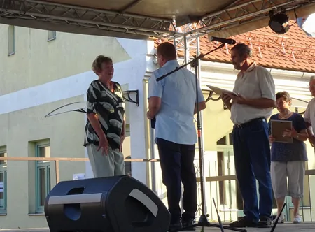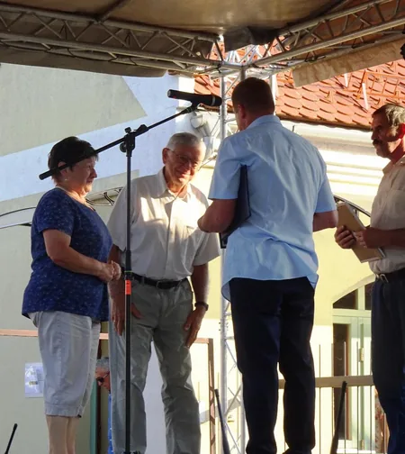 Ezután Márkus Zoltán polgármester a közösségépítésben végzett munkájáért díszoklevelet adott át Griecs Andrásnak és Griecs Andrásnénak, kiemelve a házaspár helytörténeti kutatásban, hagyományteremtésben és a virágosító mozgalom szervezésében elért eredményeit.